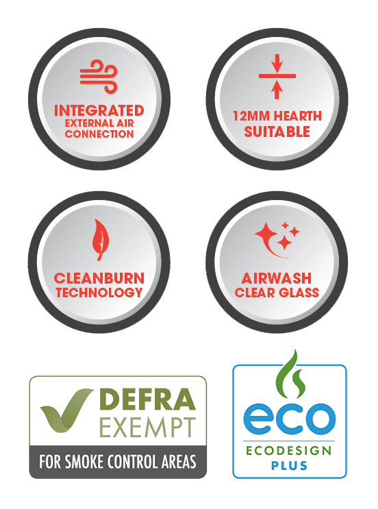 The Eton’s advanced firebox technology enables it to meet the latest Ecodesign standards for emissions and efficiency. When used to burn sustainably sourced seasoned or kiln-dried logs, these wood burning stoves provide an authentic fireside experience, alongside efficient and sustainable heating.