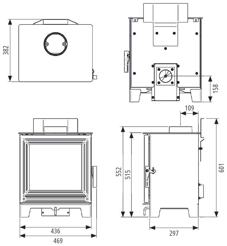 Flue outlet: 5″ top or rear